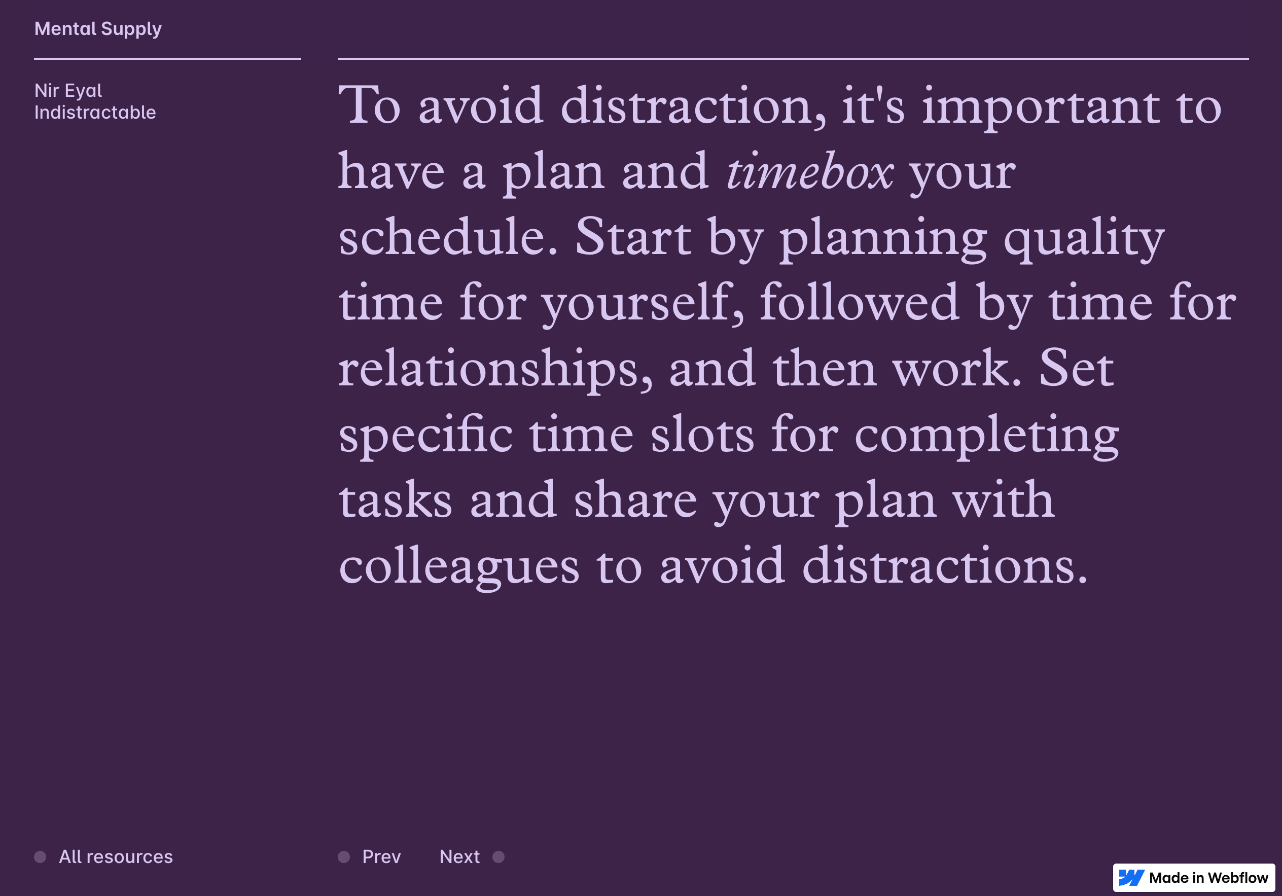 [Silas] Steve Jobs once said, “Focus is about saying no to a hundred other ideas.” How do you personally stay focused to deliver efficiently on your projects?